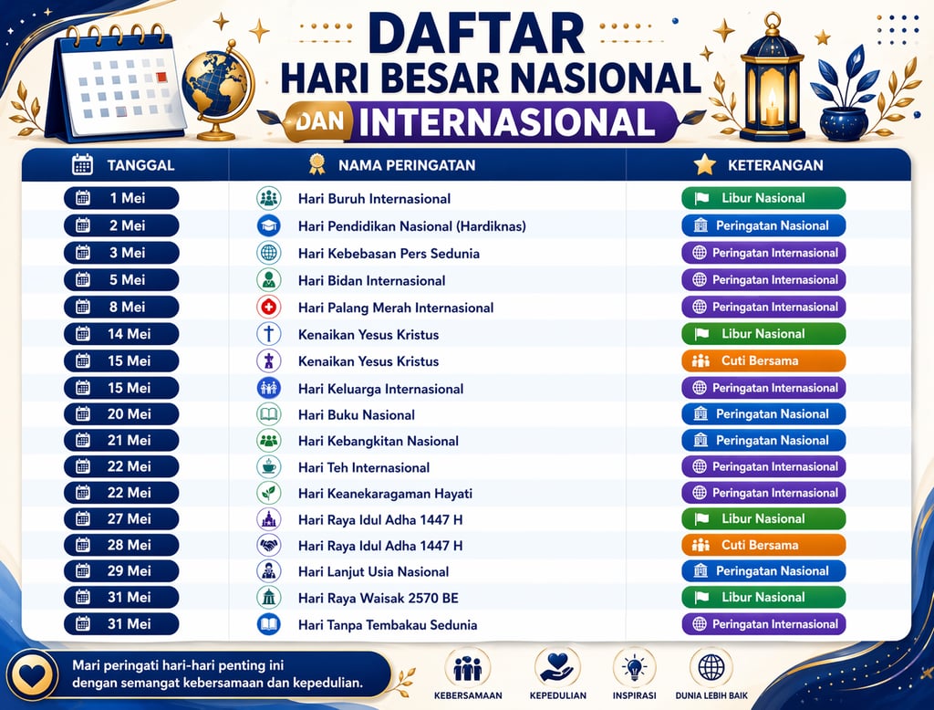 Kalender Hari Besar Nasional dan Internasional Mei 2026