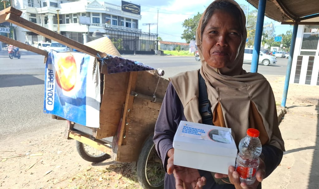 Kami turun dari kendaraan dan mendekat. Ternyata, sang ibu tengah duduk bersama suaminya — seorang pemulung. Mereka berdua tengah menikmati seikat Lotis sederhana, satu-satunya makanan yang mereka miliki sejak pagi. "Alhamdulillah... dari pagi kami belum makan, mbak," ucap si ibu dengan mata berkaca, sambil tersenyum menerima nasi kotak yang kami berikan."Nggak ada yang bisa dimakan tadi, ini tadi ada orang kasih Lotis. Alhamdulillah buat ganjal perut... eh sekarang malah dikasih nasi. Terima kasih banyak ya mbak..."